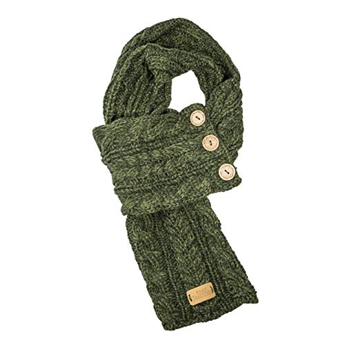 Aran Traditions Dark Green Cable wrap Button Scarf