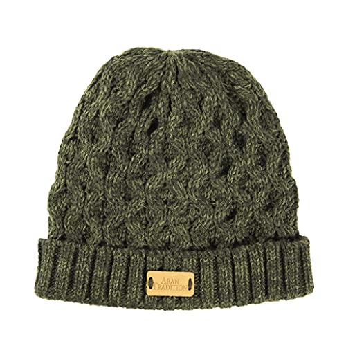 Aran Traditions Dark Green Cable Knit Design Beanie Hat