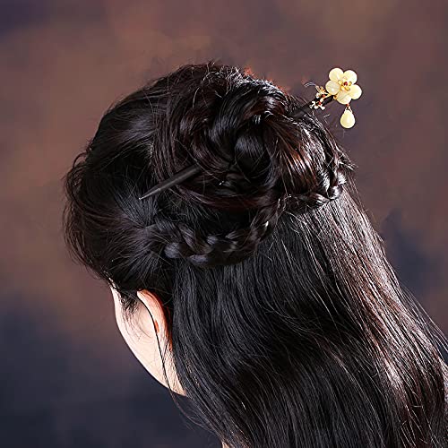 [LAVORAZIONE SQUISITA] Tecniche di intaglio realistiche fatte a mano pure, Classico elegante impreziosito da gelsomino smaltato, Agate Inlaid, Spiega l'estetica orientale. Forcine per capelli delicatamente lucidate con bastoncino curvo, bordo liscio, chignon facile da fissare e difficile da sciogliere senza danneggiare i tuoi bei capelli.