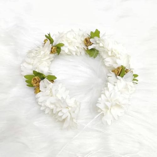 Tradizionale indiano accessori per capelli bianco Gajra fiore artificiale gioielli fatti a mano Veni tiara per le donne abbigliamento da festa sposa mehndi capelli chignon attivo (bianco sporco)