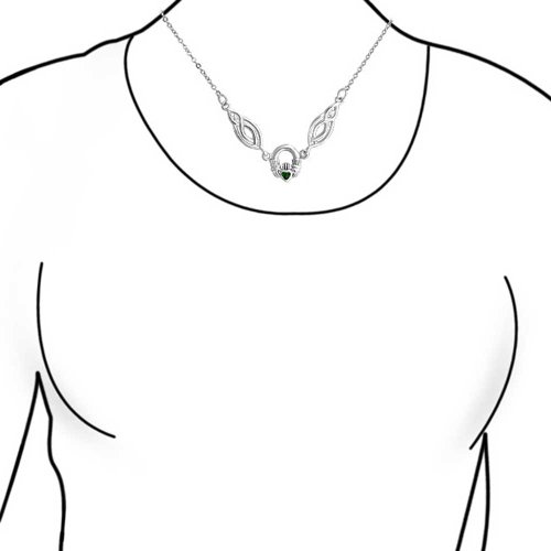 Tradizionale irlandese simulato verde smeraldo cubic zirconia BFF amicizia celtica cuore trinità amore nodo Claddagh collare V collana dichiarazione per le donne .925 argento sterling