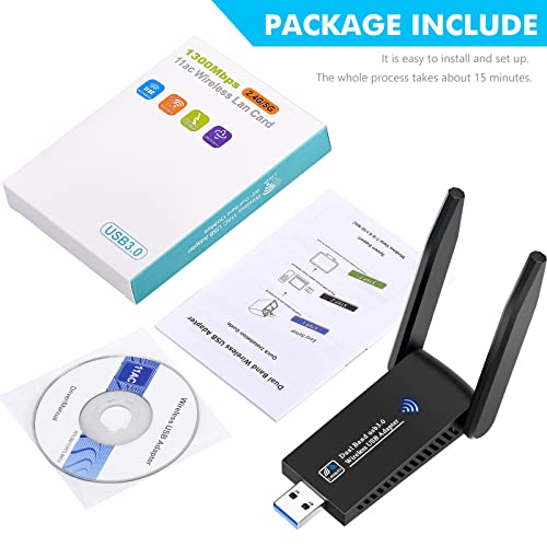 Trahoo Chiavetta WiFi USB, 1300 Mbps Antenna WiFi, Per PC Doppia Antenna 5dBi, per Laptop Desktop Banda 2.4 Ghz/5 Ghz Dongle WiFi Compatibile con Windows 10/7/8/8.1/XP/Vista Mac OS 10.9-10.15