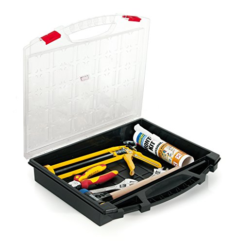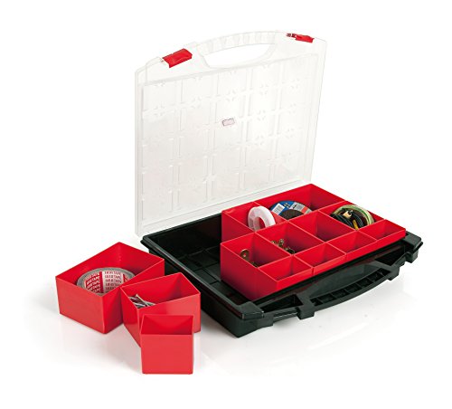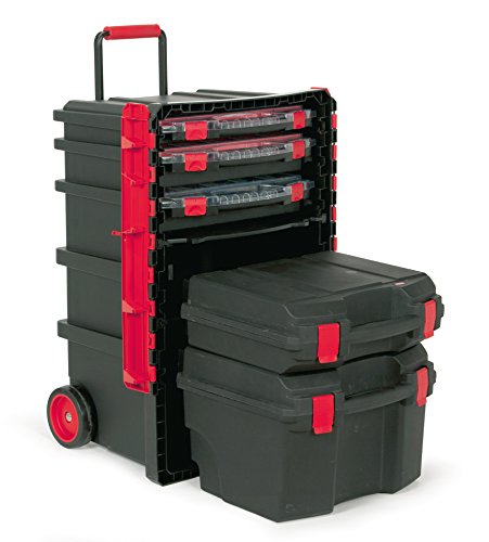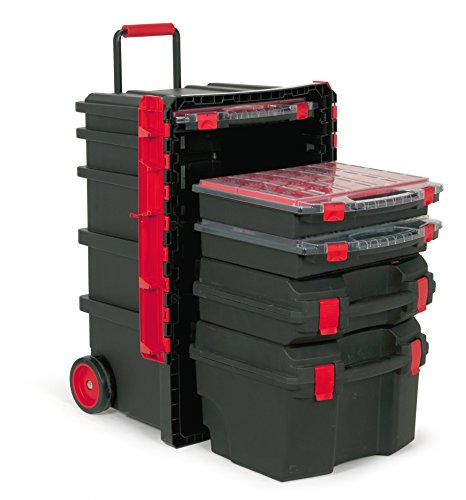 Materiale utilizzato: polipropilene, ruote in gomma eva e polistirolo nei cassetti e coperchio trasparente