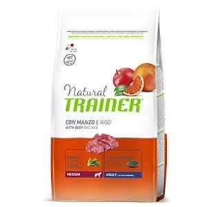 Trainer Natural Adult Medium con Manzo, Riso, Cicoria e Alga Spirulina 3 kg