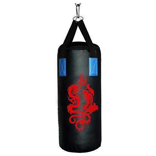 Sacco da boxe Set da circa 12 kg sacco da boxe pesante, dimensioni: 55 x 25 cm, con superficie tessile avanzi riempito, Ecopelle in vinile di alta qualità con 3 diverse fantasie Z. scelta, cuciture rinforzate e molto bene trasformati, Acciaio, anelli e moschettone con nylon.
