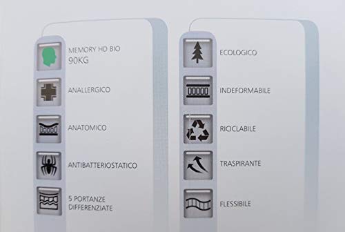 Memory Foam HD 90 Kg Memory Foam Bio Green con Sistema Renewable Resources e Antidecupito