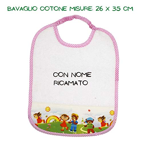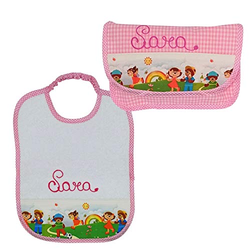 Trama Toscana Set 2 Pezzi Bavaglio cm 26x35, Busta cm 18x27. Cotone 100%. con Nome del Bambino Ricamato. Dopo l'acquisto inviaci Un Messaggio con Il Nome da RICAMARE