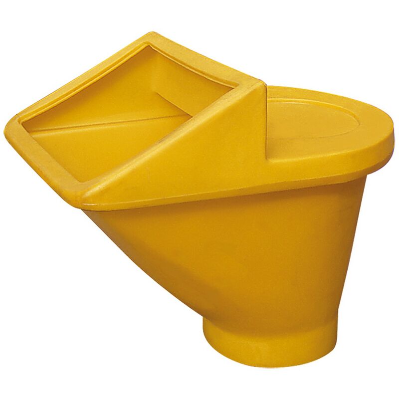 Per scarico macerie, in polietilene alta resistenza. bocca di carico 64x42 cm, foro inferiore scarico ø 39 cm. dimensioni corpo: 98x74xh.85 cm.colore giallo