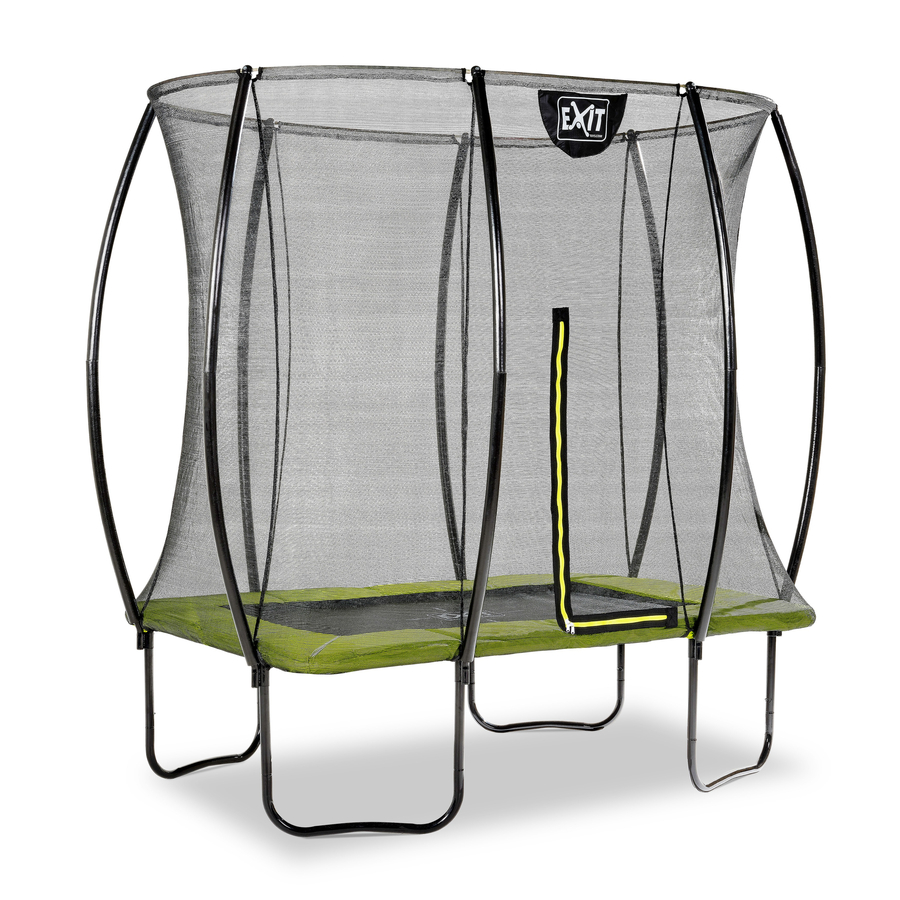 Il tappeto elastico EXIT Silhouette Trampoline on Feet è un trampolino rettangolare compatto con un bordo protettivo verde lime. La rete di sicurezza, fornita di serie con i trampolini ai piedi, è dotata di pali curvi in modo che la rete sia ben tesa. Questo non è solo extra sicuro perché i bambini non possono rimanere impigliati nella rete, ma sembra anche più tranquillo in giardino. La rete di sicurezza è dotata di un'accattivante cerniera verde fluorescente, in modo da poter vedere immediatamente se la cerniera è chiusa correttamente. Il cerchio di protezione di alta qualità copre completamente le molle zincate ed è dotato di un sistema di protezione del piede appositamente sviluppato in modo che il piede non possa entrare tra le molle. Le robuste molle garantiscono un buon rimbalzo. Il telaio del trampolino Silhouette è zincato e verniciato a polvere in modo che la ruggine non abbia alcuna possibilità. I tappeti elastici EXIT Silhouette sono fantastici, solid e offrono un divertimento senza fine con i salti! Dettagli del prodotto: Dimensioni (LxP): 153 x 214 cm Altezza rete di sicurezza: 185 cm Peso: 49 kg Materiale: EPE, PP, PVC, PE, Metal l 44 molle Design chic Con sistema di protezione dei piedi Max. Peso dell'utente: 100 kg Età: a partire da 3 anni Incluso come standard Rete per saltare Bordo di protezione verde lime 44 molle zincate da 14,1 cm 4 metal lene W feet Rete di sicurezza con cerniera Gancio a molla Istruzioni