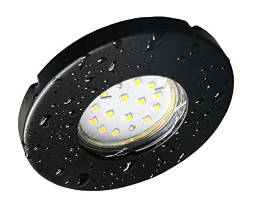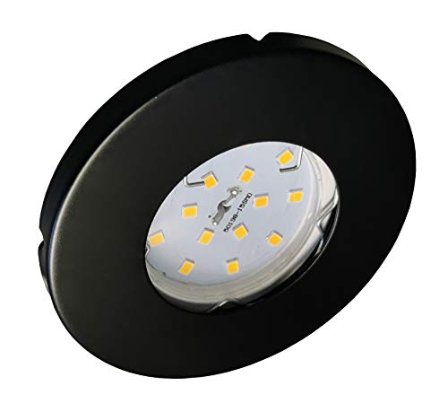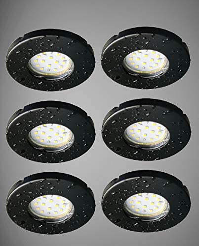 Trango 6729IP-065BAK - Set di 6 faretti LED da incasso IP44, colore nero opaco, con 6 lampadine LED GU10 da 3 Watt, 3000 K, luce bianca calda e attacco GU10, per esterni, da incasso, per il bagno