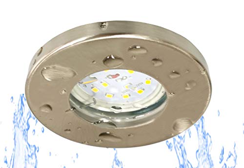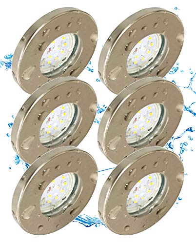 Trango 6 set IP44 Downlight da incasso a LED in nichel opaco rotondo TG6729IP-062MO incl.6x 5 W Modulo LED solo 3 cm di profondità di installazione per bagno, faretti da incasso, faretti a soffitto