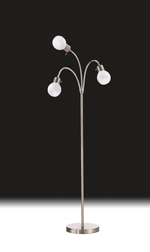 Trango Lampada da terra a 3 fiamme a LED incl. 3x 3 gradini modulo LED dimmerabile illuminante & 3x paralume in vero vetro satinato TG1518 lampada da terra, girevole e girevole altezza: 155cm