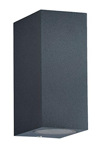 Trango IP44 Alu Up & Down Light in nero antracite quadrato TG8011-SA per interni ed esterni, applique da parete per esterni, proiettore esterno, faretto a parete, adatto per 2 lampadine LED GU10