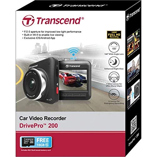 Transcend Ts16Gdp200, Dashcam Per Auto, Schermo Full Hd a Colori Da 6,1 Cm (2,4"), Wi-Fi, Ingresso Schede Micro Sd, Usb 2.0, Nero