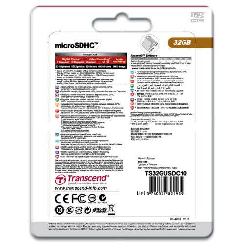 Transcend TS32GUSDC10 Scheda di Memoria MicroSDHC da 32 GB senza Adattatore, Classe 10