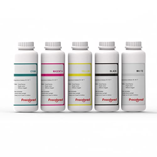 DTF Inchiostro PET Film Transfer Ink per DTF Pacchetto stampante include: 5 bottiglie 500ml DTF inchiostro (1* ciano, 1* magenta, 1* giallo, 1* nero, 1* bianco)