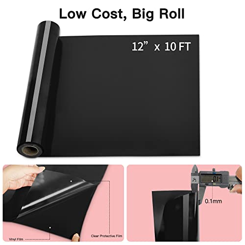 HTV Heat Transfer Vinyl Rolls - 12In x 10Ft Black, Permanent Vinyl for Cricut & Cameo Heat Press Machine, Easy Cut & Weed Heat Transfer Vinyl DIY on T-Shirts Canvas Bag ect