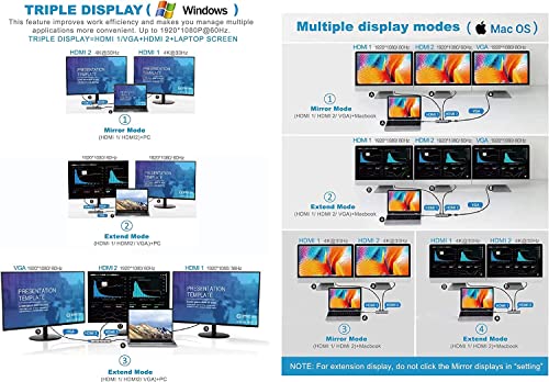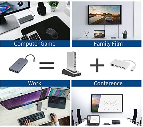 【Display triplo】 Le uscite 2x HDMI o HDMI e VGA possono essere utilizzate contemporaneamente per i vari dispositivi di visualizzazione (monitor, televisore, proiettore). Due dispositivi di visualizzazione e il display del laptop Windows possono mostrare contenuti diversi contemporaneamente. Dimentica la tua vecchia docking station e utilizza il nostro hub USB C intelligente e compatto, puoi lavorare più velocemente ovunque e avere un ampio spazio di lavoro e maggiore flessibilità!