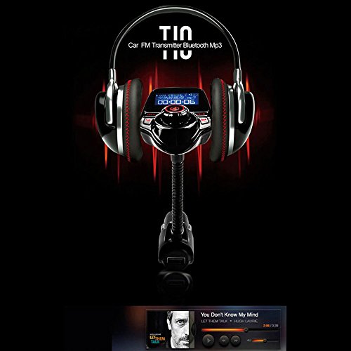 FM Transmitter Bluetooth Handsfree Car Kit Wireless Radio Audio Adapter with One USB 5V 2.1A USB Charger, 1.44 Inch LCD Display, 3.5mm AUX Audio Port, TF Card