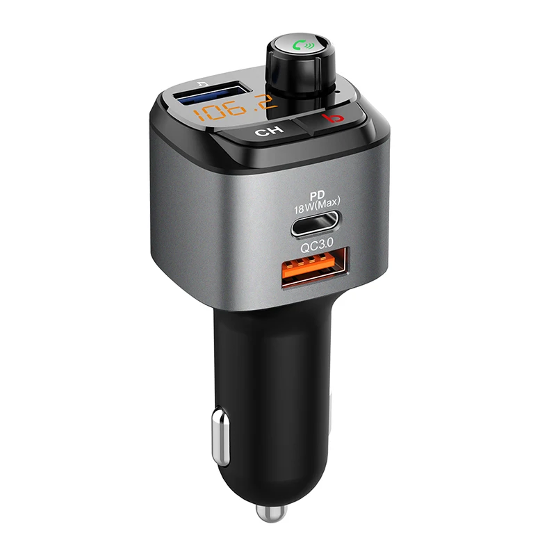 Car FM Transmitter Fast Charging PD Car USB Charger MP3 Player Bass Sound Hands Free Bluetooth-Compatible 5.0 Wireless Car Kit