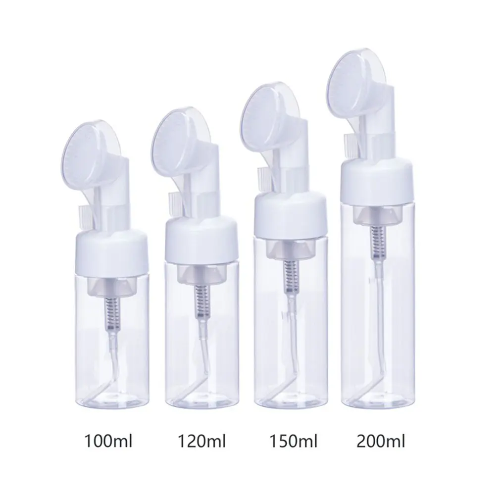 Transparent Face Wash Portable Bottle Dispensing Press-type Makeup Remover Water Bottle With White Brush