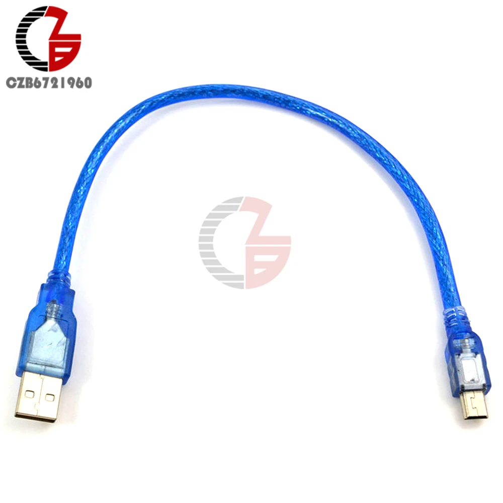 30cm Transparent Blue Type A Male to Type B Male Dual Shielding High Speed USB 2.0