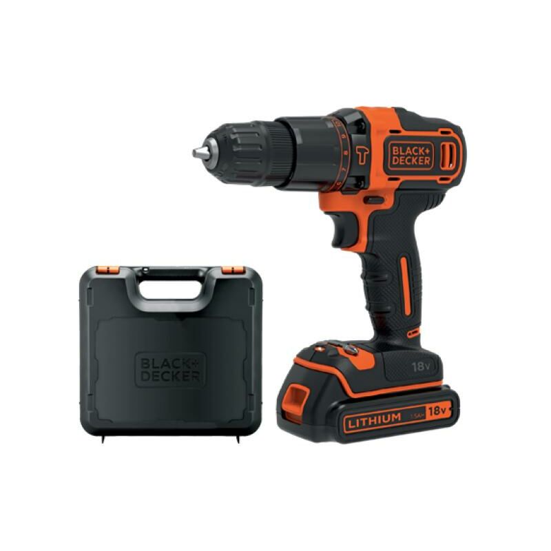 Percussione. Potenza 18 Volt - 1,5 Ah, batteria Litio, 2 velocita' meccaniche 0-400/0-1350 giri/min., percussione 20.250 colpi/min., reversibile, mandrino autoserrante 10 mm., tempo di ricarica 3/5 ore. Dotazione: 2 batterie Litio, caricabatteria, valigetta