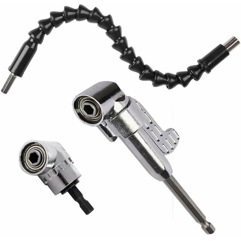 Set di accessori per trapano - 2 ingranaggi conici per trapano da 105 gradi (65 mm e 130 mm) e 1 punta per albero flessibile da 30 cm, in modo da poter completare facilmente il lavoro senza dover acquistare accessori aggiuntivi. 【Materiale】 L'ingranaggio conico del cacciavite è realizzato in acciaio al vanadio di alta qualità, resistente alla ruggine, alla corrosione, elevata durezza e non facile da rompere. 【Punta per trapano angolare】 Ingranaggio angolare 105 ° può ruotare Può essere ruotato di 360 gradi, coppia massima: 10 N/m, questo utensile universale per manicotti è molto adatto per forature leggere, bassa velocità/avvitamento, come > 【Porta punte flessibile per cacciavite】 punta maschio/femmina: 6,35 mm/6,35 mm, l'interfaccia dell'asta esagonale del gambo è magnetica e può essere ruotata di 360° e il guscio non è facile da rompere. Quando l'albero interno ruota, l'involucro flessibile nero protegge le tue mani da lesioni. 【Non applicabile a trapani per impieghi gravosi】