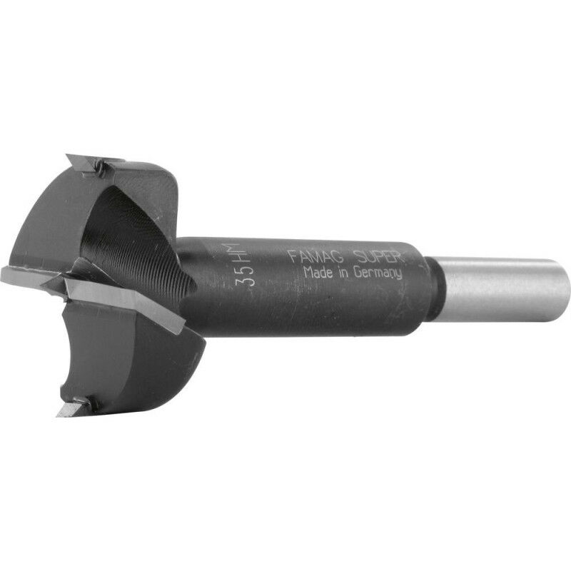 Fresa artificiale HM - Taglienti HM - Punta centrale - 2 pretaglienti - Per fori puliti, senza strappi e dimensionalmente precisi in legni duri, esotici, truciolari ecc. Pannelli truciolari ecc.