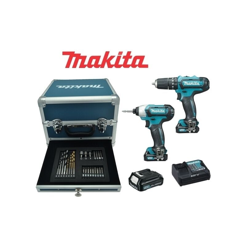 Kit Makita CLX202SAX2, fornito in pratica valigetta per il trasporto con accessori, � comprensivo di trapano avvitatore con percussione HP331D, avvitatore ad impulsi TD110D, 3 batterie BL1020B con celle da 2,0 Ah e caricabatterie DC10SA. Il kit CLX202SAX2 � realizzato dunque con la nuova generazione di avvitatori compatti al litio da 10,8 V alimentati con prestanti batterie con amperaggio da 2,0 Ah. Il kit CLX202SAX2 � realizzato per rispondere all'esigenza della maggior parte degli artigiani e utilizzatori in genere grazie all'ottimo rapporto qualit� prezzo dato dalla prestanza delle macchine in dotazione senza per� influire su peso e compattezza. In dotazione: - Trapano avvitatore Makita HP331D - Avvitatore a massa battente Makita TD110D - Caricabatterie 10,8 V Makita DC10SA - 3 x Batteria Li-ion 10,8 V Makita BL1020 - Valigetta in alluminio con cassetto a scomparsa - Set punte e inserti 24 pezzi Caratteristiche Tecniche Trapano avvitatore Makita HP331D - Velocit� a vuoto (gir/min)