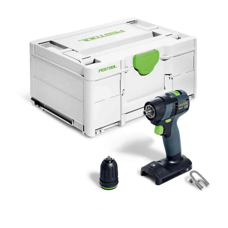 Trapano Festool TSX 18-Basic 18V è l'aiutante ideale per i più diversi lavori quotidiani. La classica forma a T assicura una facile manipolazione e una breve distanza dal pezzo. Numerosi accessori risolvono le applicazioni più difficili, perfetti anche per gli spazi stretti o gli angoli. Il cambio rapido degli utensili è garantito dall'interfaccia FastFix e dal sistema CENTROTEC. Dettagli intelligenti come il deposito per bit, il comando della luce e il systainer³ con coperchio a scomparti fanno del TXS 18 un concentrato di potenza compatto con un pratico equipaggiamento speciale. Ergonomia convincente e peso ridotto, per forare e avvitare comodamente La forma compatta e maneggevole semplifica il lavoro anche in punti stretti Cambio rapido e senza attrezzi in foratura, avvitamento, foratura angolare e avvitamento angolare grazie all'interfaccia FastFix Numerosi accessori per applicazioni versatili. Tutti gli accessori degli attuali avvitatori 18 V sono compatibili con CXS 18 e TXS 18