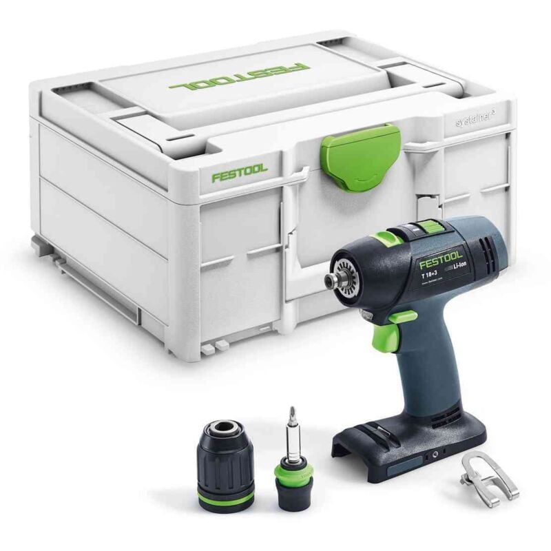 Trapano Avvitatore FESTOOL T 18+3 - Durata, robustezza e potenza grazie al motore EC-TEC brushless che non necessita di manutenzione - Regolazione e spegnimento della coppia completamente automatici per un avvitamento preciso - Estensioni intelligenti e sistema di cambio utensile rapido CENTROTEC per tutte le applicazioni: angolo aggiuntivo ed eccentrico (non incluso) - Interfaccia FastFix per cambiare le testine in pochi secondi e senza attrezzi Dettagli: - Mandrino per utensili standard: il mandrino con larghezza standard fino a 13 mm consente anche l'utilizzo di tutte le punte e trapani convenzionali - 6 consigli sempre a portata di mano;