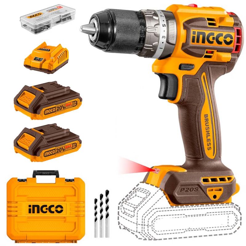 Trapano avvitatore a percussione a batteria 20 V Ingco CIDLI20602 compact, dalle dimensioni ridotte ma con una coppia max di 60 nm. Venduto in set con 2 batterie 2 ah caricabatterie rapido 20 V, inserti, punte e valigetta. Motore brushless (senza spazzole) Voltaggio: 20V Volt di carica: 220-240 V~50/60 Hz Velocità a vuoto: 0-450/0-1900 giri/min Tasso di impatto massimo: 22500 bpm Coppia massima: 60 Nm Mandrino in metallo Capacità del mandrino: 2-13 mm Impostazioni della coppia: 23+1+1 Mandrino senza chiave con bloccaggio automatico Cambio meccanico a 2 velocità Funzione di blocco del mandrino Inclusi: Accessori da 47 pezzi 3 punte per muratura Pacco batteria da 2 pezzi 2.0Ah (FBLI2001) Caricabatterie da 1 pz (FCLI2001E) Luce da lavoro integrata Indicatore LED di carica della batteria Valigetta inclusa