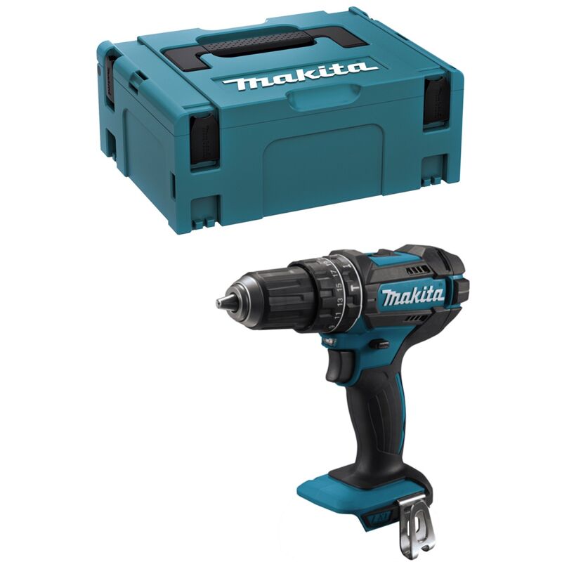 Trapano a Percussione MAKITA DHP482 - Nuovo Trapano a Percussione più compatto del modello precedente (BHP456) - 21 posizioni di coppia di serraggio + martello - 2 velocità meccaniche - Mandrino autobloccante, cambio più rapido degli accessori con una sola mano - Impugnatura ergonomica rivestita in elastomero per una migliore presa - Luce a LED sulla parte anteriore che illumina il punto di lavoro per una maggiore visione dell'utente