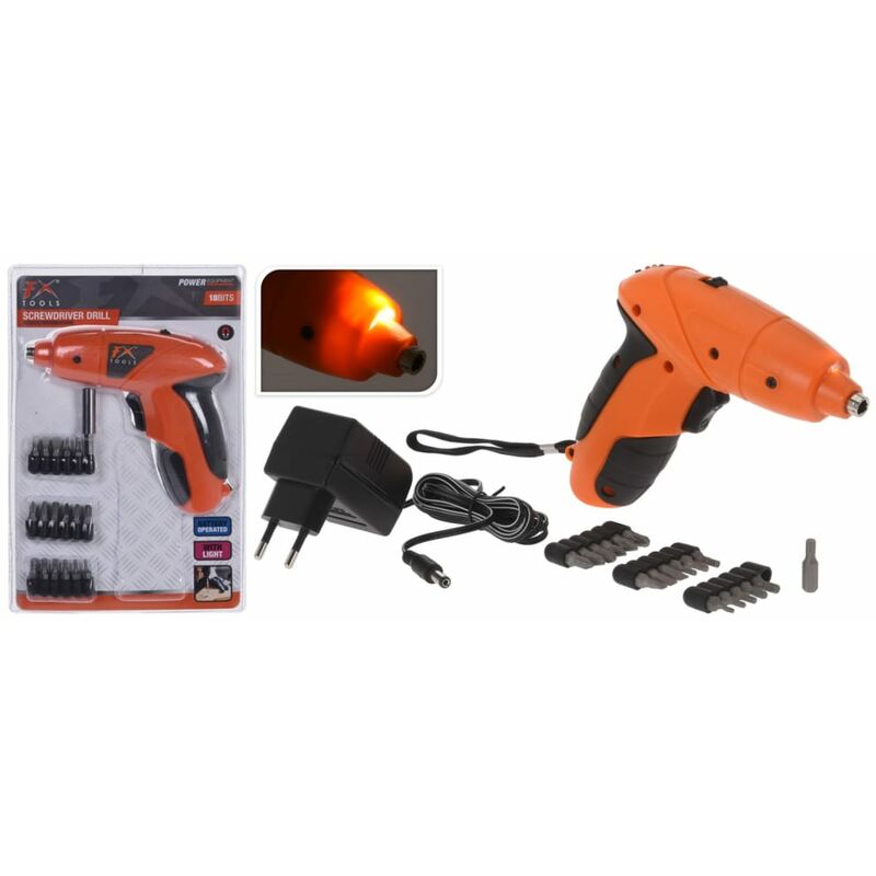 Questo avvitatore a batteria con caricatore di punte della FX-Tools è utile sia per i professionisti che per gli appassionati di bricolage. Dispone di 18 bit in una varietà di tipi e dimensioni, consentendo così di affrontare i lavori di avvitatura in modo tempestivo ed efficiente. L'avvitatore elettrico funziona con una batteria ricaricabile Ni-MH da 600 mAh (inclusa). Colore: Arancione e nero Materiale: Metallo Peso della batteria: 72 g Con indicatore stato delle batterie Batteria richiesta: 1 batteria ricaricabile Ni-MH da 600 mAh (inclusa) Set trapano elettrico con 18 punte: 3 punte (4;