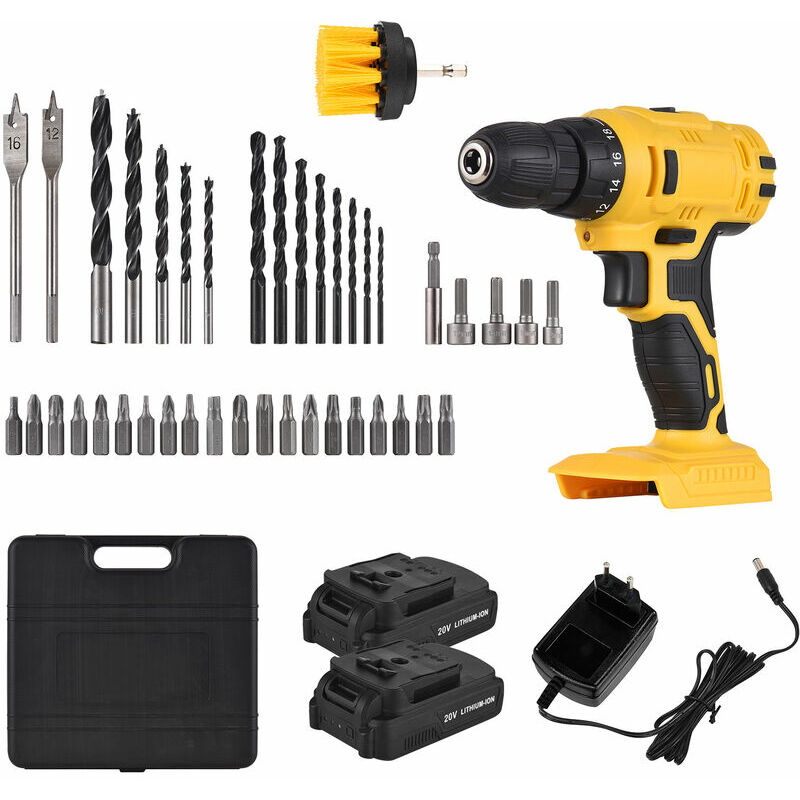 Il trapano elettrico portatile con batteria ricaricabile 20V 1300mAh e caricatore rapido è un pratico strumento per forare. È facile da usare e portatile da trasportare e può essere applicato alla ricostruzione domestica, al fai-da-te, alla lavorazione del legno, al giardinaggio, alla riparazione di automobili e altro! Nota: 1. Il trapano è adatto per la perforazione nel muro di cemento, ma non è dotato di tali punte, si prega di prepararlo da soli. 2. Le dimensioni e il colore possono essere leggermente diversi a causa della misurazione manuale e delle diverse condizioni di illuminazione, si prega di prevalere in natura. Grazie. Specifiche: Caricabatterie: spina europea/spina americana (opzionale) Colore: giallo Materiale: ABS Diametro del mandrino: 10 mm (3/8") Velocità a vuoto: 0- 400 giri/min/0-1500 giri/min Velocità: 2 impostazioni di velocità variabili Impostazione della coppia: 18+1 Coppia massima: 28 Nm Capacità di foratura: metallo 10 mm, legno 20 mm Batteria: batteria al