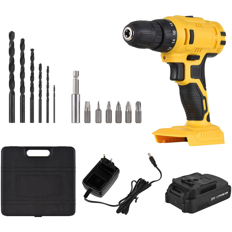 Il trapano elettrico portatile portatile con batteria ricaricabile da 20 V 1300 mAh e caricabatterie rapido è uno strumento pratico nella perforazione. È facile da usare e portatile da trasportare e può essere applicato alla ricostruzione domestica, all'artigianato fai-da-te, alla lavorazione del legno, ai lavori di giardinaggio, alla riparazione di automobili e altro! Nota: Le dimensioni e il colore possono essere leggermente diversi a causa della misurazione manuale e delle diverse condizioni di luce, si prega di prevalere in natura. Grazie. Specifiche: Caricabatterie: spina europea/spina americana (opzionale) Colore: giallo Materiale: ABS Diametro mandrino: 10 mm (3/8") Velocità a vuoto: 0-400rpm/ 0-1500rpm Velocità: regolazione della velocità a 2 variabili Impostazione della coppia: 18+1 Max. Coppia: 28 Nm Capacità di foratura: metallo 10 mm, legno 20 mm Batteria: batteria al litio da 20 V 1300 mAh Faro da lavoro a LED: sì Dimensioni confezione: 42 * 21 * 10 cm / 16,54 * 8,27 *