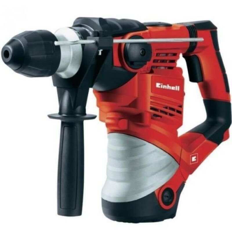 Martello trapano demolitore tassellatore 1600 W Einhell 4 funzioni in valigetta Tassellatore a 4 funzioni TH-RH 1600 Caratteristiche I componenti di ottima qualità garantiscono grande potenza e durata nel tempo Testa ingranaggi in alluminio Frizione per sovraccarico anti scivolo Attacco SDS-Plus Blocco della rotazione con fissaggio scalpello Impugnatura anti vibrazioni Blocco della percussione Impugnatura supplementare con zigrinatura di sicurezza antiscivolo Accessori in dotazione Asta di profondità in metallo Tappo anti polvere Pratica valigetta Dati tecnici Tensione: 230 - 240 V ~ 50 Hz Potenza: 1.600 W Nr. giri: 800 min-1 Percussioni / forza colpo: 3.900 min-1 / 4,0 J Capacità foratura (cemento): 32 mm Peso del prodotto: 5,6 kg Dati logistici Peso netto: 7,6 kg Peso lordo: 7,8 kg Dimensioni imballo: 440 x 365 x 130 mm