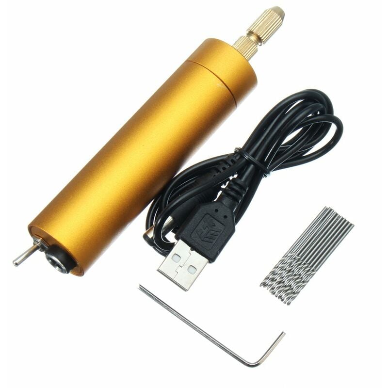 Ecco un mini kit trapano elettrico per il tuo fai da te in legno o PCB, portatile e multiuso. Specifiche: Potenza: CC 5V Giri/min max: 22000 Capacità pinza in ottone: 0,8-1,5 mm / 0,03 * 0,06 pollici Peso confezione: 119 g / 4,2 once Dimensioni confezione: 180 * 35 * 35 mm / 7,09 * 1,38 * 1,38 pollici Elenco dei pacchetti: 1 * Trapano elettrico a mano 10 * Micro trapano elicoidale 1 * Chiave inglese