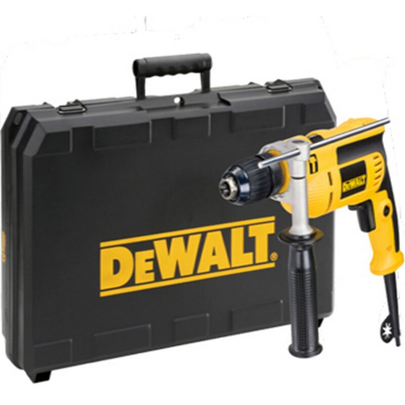 Dewalt DWD024KS con percussione, 650W, mandrino autoserrante fino a 13. DE WALT DWD024KS-QS. Trapano a percussione da 650W. Velocit�� di rotazione: 0-2800 giri/minuto. Capacit�� del mandrino: 1,5-13mm. Mandrino professionale autoserrante. Utilizzabile in 2 diverse modalit��: rotazione e rotazione con percussione. Controllo elettronico della velocit�� e reversibilit�� per la lavorazione di diversi materiali. Interruttore a due dita a prova di polvere per una lunga durata. Possibilit�� di blocco della rotazione per lavorazioni continuative. Design compatto e corpo della macchina confortevole. Impugnatura posteriore gommata per garantire maggiore confort durante l'utilizzo. Dotazione: impugnatura laterale orientabile, stop di profondit�� e valigetta.