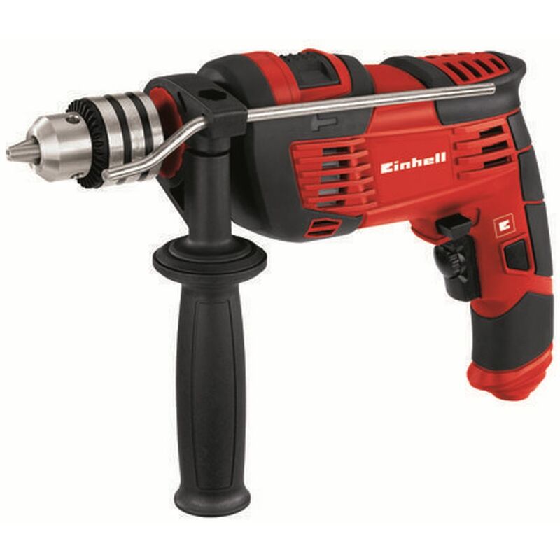 Il trapano a percussione TH-ID 1000 E è uno strumento versatile che fornisce un ottimo servizio per gli appassionati di fai da te ambiziosi nelle operazioni di avvitamento, foratura e perforazione ovunque in casa, officina e garage Mandrino a cremagliera robusto Regolazione elettronica dei giri con preselettore Selettore foratura / percussione Guida di profondità regolabile in metallo Grande impugnatura antiscivolo per miglior maneggevolezza Impugnatura supplementare con sicurezza anti rotazione Utilizzabile con supporto per trapani per mandrini con collo 43 mm