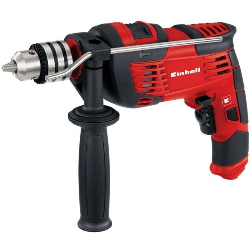 TRAPANO A PERCUSSIONE EINHELL TH-ID 1000 E ELETTROUTENSILE 1010W Descrizione prodotto Il trapano a percussione TH-ID 1000 E è uno strumento versatile che fornisce un ottimo servizio per gli appassionati di fai da te ambiziosi nelle operazioni di avvitamento, foratura e perforazione ovunque in casa, officina e garage. Il mandrino a cremagliera con funzione di blocco e sblocco del mandrino permettono un cambio utensile facile e veloce. Con il preselettore della velocità è possibile adattare la velocità a qualsiasi materiale che si desidera lavorare. Guida di profondità in dotazione per fori ripetitivi. Reversibile. L'impugnatura antiscivolo e quella supplementare consentono un utilizzo sicuro e confortevole della macchina. Dotato di mandrino a cremagliera, grande impugnatura antiscivolo, selettore foratura / percussione, regolazione elettronica dei giri con preselettore, reversibile, mandrino 13 mm e collo Mandrino 43 mm. In dotazione: impugnatura supplementare con protezione anti