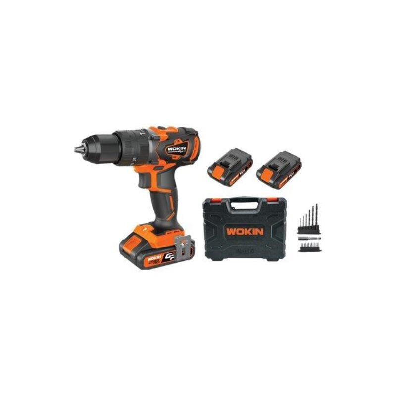 Trapano a percussione batt gp20v 620160 wokin Volt 20x2 ah 2,0 + accessori + valigia motore brushless. massima torsione nm 58. mandrino autoserrante metallico da mm. 13. frizione con 23 posizioni. due velocità a controllo elettronico, selettore percussione e reversibile. . in dotazione: 2 batterie al litio da 20v 2,0ah della serie gp20v, caricabatterie rapido, 6 punte hss, 6 inserti con adattatore e valigia rigida.