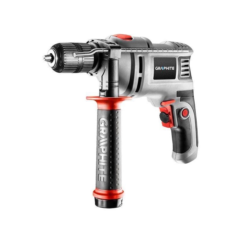 Trapano a percussione 550W mandrino autoserrante Graphite 58G735 Il versatile trapano a percussione GRAPHITE con motore da 550 W è perfetto per materiali come legno, plastica, metallo e ceramica. Dopo il passaggio alla modalità impatto, consente anche di perforare materiali come cemento o mattoni con la stessa facilità. Il trapano raggiunge velocità FINO A 3000 giri/min in funzionamento duanello e con la modalità impatto sulla sua velocità raggiunge i 48 000 impatti al minuto. L'utensile elettrico dispone della funzione di rotazione della testa in senso orario e antiorario. Il design ergonomico e il peso ridotto rendono decisamente più facile l'utilizzo in aree difficili da raggiungere. L'utensile è dotato di un snodato e robusto cavo di alimentazione in gomma coating, lungo 3 m, pensato anche per applicazioni professionali e industriali per uso interno ed esterno. Il funzionamento prolungato in condizioni di lavoro gravose è più facile grazie alla funzione di blocco dell'interruttore