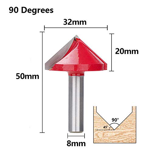 Trapano Punte Fresa per incisione 3D a forma di V con gambo da 8 mm Fresa per legno a 90 gradi con diametro fresa in metallo duro-_8x32mm 90D