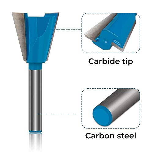 Trapano Punte 5 pezzi Fresa a coda di rondine Punta da 1/4 di pollice Codolo a coda di rondine Fresa per legno con rivestimento blu Utensile per taglierina per bordi