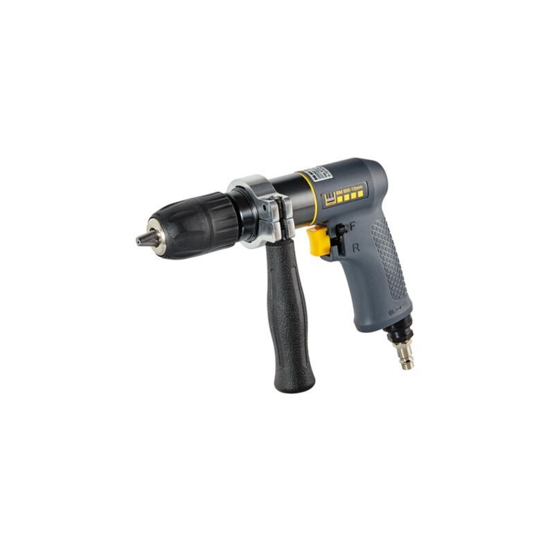 Trapano Schneider BM 800-13mm Trapano potente, soprattutto per l'utilizzo di utensili di grande diametro grazie al motore a rotazione lenta e coppia elevata Cambio rapido della punta estremamente veloce grazie al mandrino ad azione rapida senza utensili aggiuntivi Funzionamento facile e comodo grazie alla regolazione fine della leva di comando e alla semplice commutazione destra-sinistra Protezione dell'utente l'aria di scarico è diretta lontano dall'utente attraverso l'impugnatura con silenziatore incorporato Lavoro a basso affaticamento grazie alla forma ergonomica e al peso molto ridotto di 1,3 kg Dati tecnici Fabbisogno d'aria 8 l/s Potenza 0,4 kW Coppia 15 Nm Velocità 800 min-1 Peso 1,3 kg Pressione di lavoro 6,3 bar Mandrino 1-13 mm