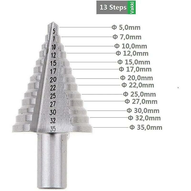 Dimensione perfetta: per un trapano di diverse dimensioni di 5-35 mm di diametro, un trapano può praticare fori di diverse dimensioni. Materiali di alta qualità: realizzati in HSS di alta qualità, il rivestimento in titanio garantisce un'estrema durata, riduce l'attrito e il calore. La mche in titanio è particolarmente adatta per la lavorazione di punte in rame e alluminio / acciaio per stampi / acciaio per molle / pezzi di ghisa / ferro e altri materiali metallici. Foratura facile: la posizione del foro di marcatura e il design a doppia scanalatura rendono la perforazione più rapida e agevole, oltre a un'attenta perforazione. Dimensioni del laser: le dimensioni sono dei bassi laser nel metallo in modo che non si consumino dopo un uso rpte. Materiali applicabili: acciaio, ottone, plastica, legno, rame, fibra di vetro, PVC, pinna metallica e alluminio. Ogni lettore/tuttofare il mrite wellÈ realizzato con acciaio HSS di alta qualitàPercer oggetti duri, facilmente come il burro da