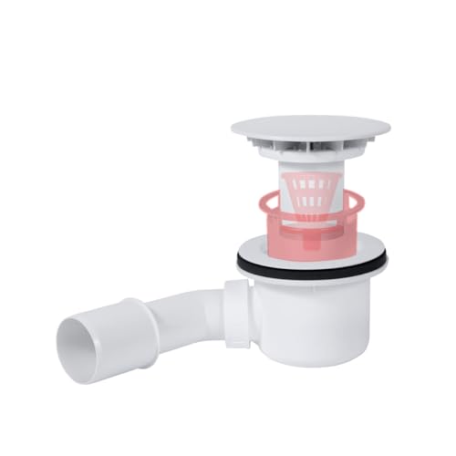 Trapflex Set - Sifone per Piatto Doccia Alcaplast A49 90mm con Copertura Bianco, Filtro per Capelli, Gomito di Scarico 45°, Tubo Flessibile, lubrificante Sanitario