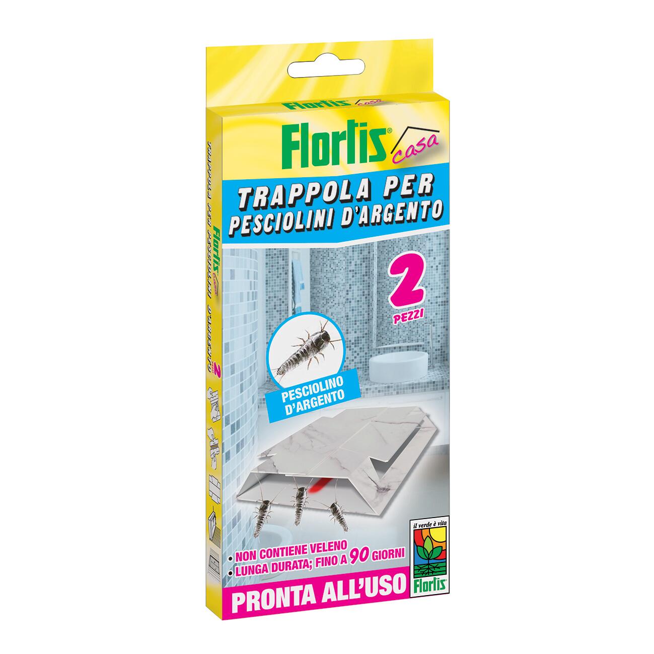 Trappola pronta all'uso per rilevare la presenza di pesciolini d'argento con attrattivo alimentare aromatizzato alla liquirizia inserito direttamente nella massa adesiva. La trappola può essere posizionata direttamente a pavimento, prevalentemente nelle zone più umide (bagni, cucine, cantine, ecc.). E' un prodotto che non contiene insetticidi, è inalterabile nel tempo per cui non cola, non sporca e la sua efficacia è per circa 3 mesi.. Adatto per pesciolini d'argento. Non contiene veleno. Lunga durata 90 giorni. Non cola e non sporca